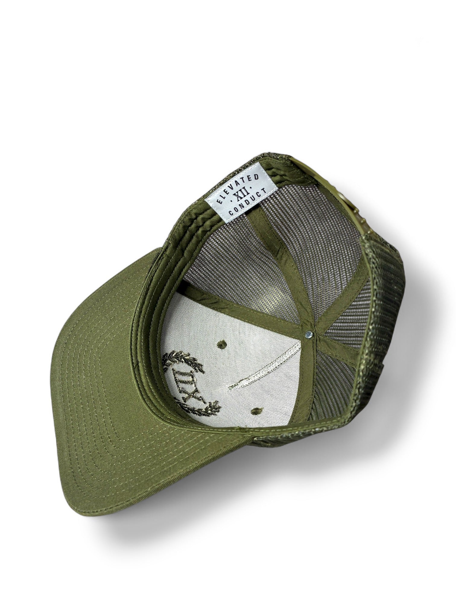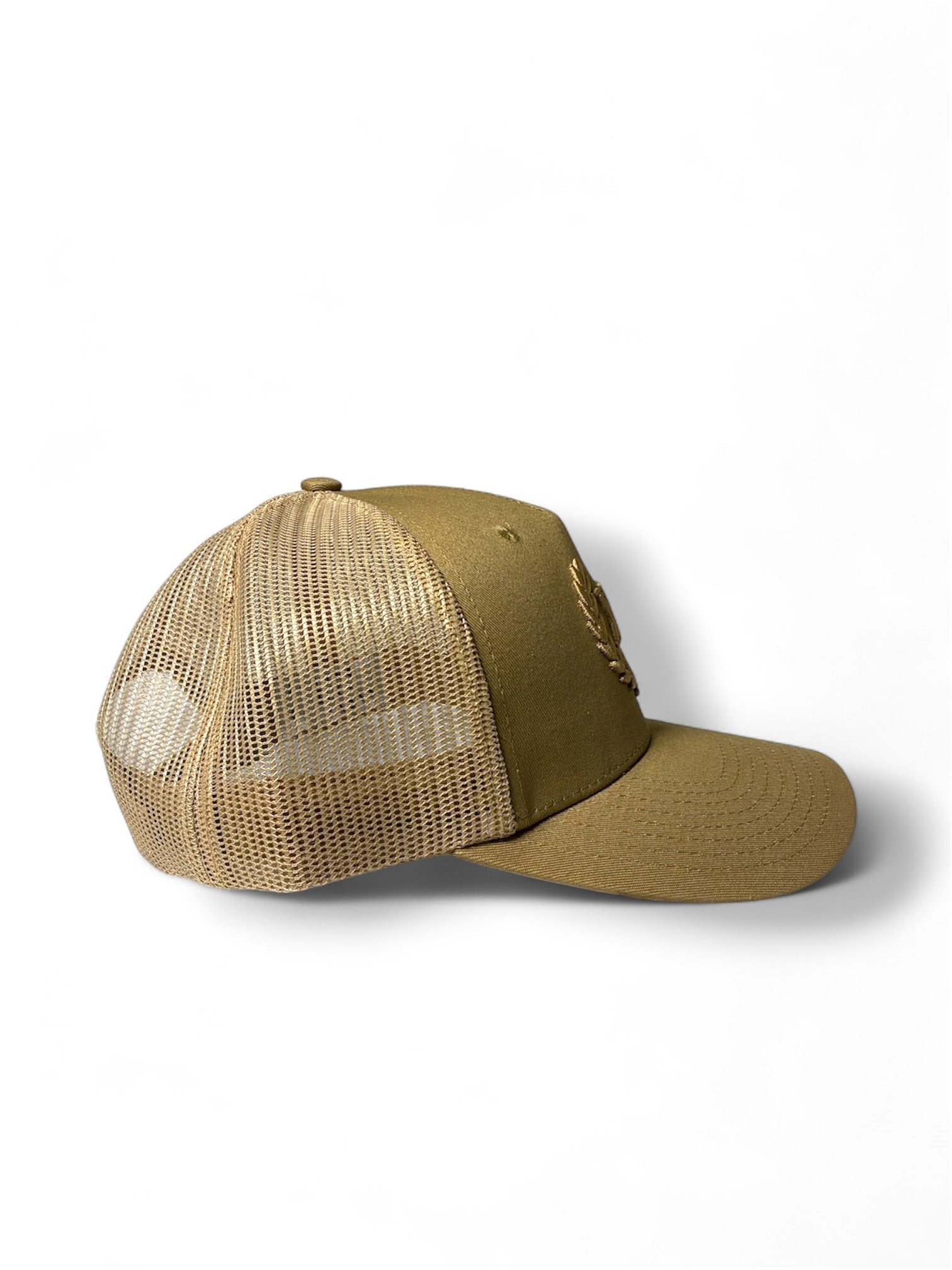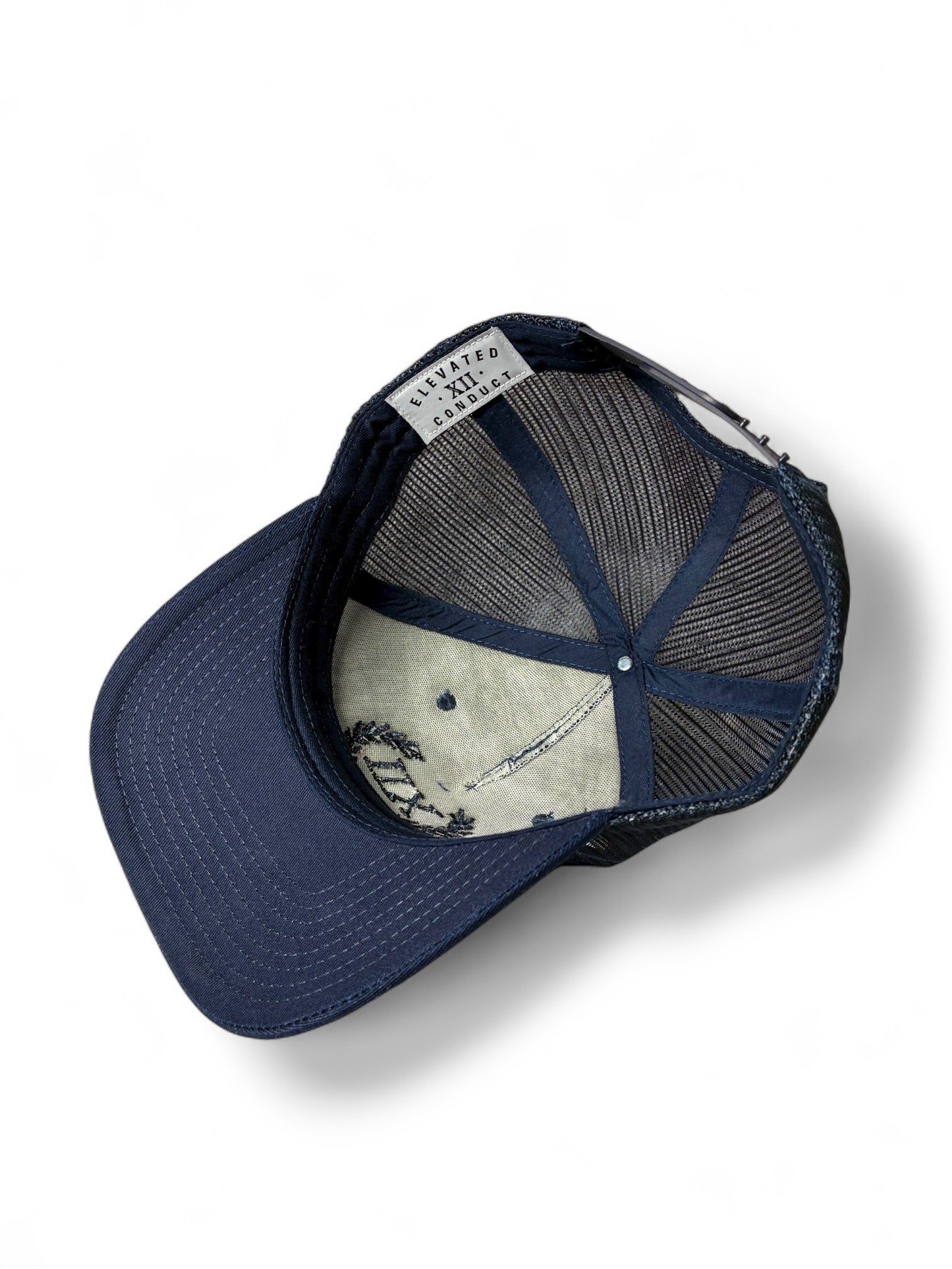 Our take on the American classic trucker hat combines a clean color-on-color design with our trademark logo, artfully stitched on the front. Simple yet significant, this hat embodies strength and timeless style.